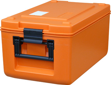 Термоконтейнер с вертикальной загрузкой для транспортировки горячей и холодной пищи в диапазоне температуры от -20°C до +90°C. Контейнер вмещает одну гастроемкость GN 1/1, 200 мм. Крышка закрывается на защелку, контейнер имеет складные ручки для переноски и направляющие для штабелирования.. Материал - полипропилен.