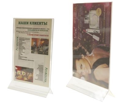 Подставка для информационных листов BESTFOOD TB4. Формат А5 (148х210 мм). Изготовлена из прозрачного акрила толщиной 2 мм.