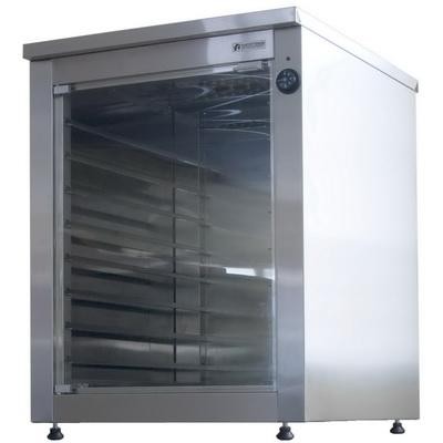 Шкаф для расстойки теста РТ-530У предназначен для эксплуатации на предприятиях общепита совместно с печью ПКУ. Нагрев происходит за счет электрического ТЭНа. 8 уровней, механическое управление, пароувлажнение, подсветка. Облицовка выполнена из нержавеющей стали, дверки - из жаропрочного стекла. Регулировка температуры от 20 до 90?С. Герметичная теплоизоляция, хороший внешний вид, простота в использовании и небольшие размеры позволяют использовать данный вид шкафов не только на кухнях кафе и ресторанов, но и в магазинах. Дополнительные кронштейны уровней в комплекте для использования противней разных размеров, возможожность устанавливать посуду любого меньшего размера.