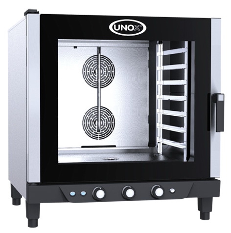 Пароконвектомат UNOX XV 593 - инжекторная модель с механическим управлением. Применяется на профессиональной кухне для приготовления и разогрева вторых блюд и полуфабрикатов, а так же выпечки хлебобулочной продукции. Эта печь позволяет работать в режиме предварительного разогрева до 260 °C, в конвекционном режиме при температуре 30-260 °C и в пароконвекционном режиме при температуре 48-260 °C. Вместимость 7 GN1/1. Расстояние между уровнями 67мм. Скорость вентилятора: 2 + реверс. Увлажнение: инжекторное (ручная регулировка). Стекло дверцы и наружные поверхности камеры не нагреваются. Дверца блокируется в позициях 60° / 120° / 180° и перевешивается по желанию. Дверные петли и замок изготовлены из высокопрочных материалов. Камера печи выполнена из нержавеющей стали и имеет закругленные углы для удобства мойки. Таймер с обратным отсчетом. Подсветка камеры. Тип питания: Электричество.