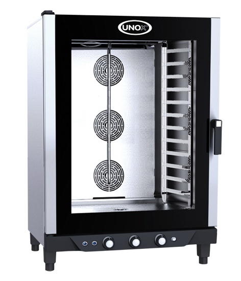 Пароконвектомат UNOX XV 893 - инжекторная модель с механическим управлением. Применяется на профессиональной кухне для приготовления и разогрева вторых блюд и полуфабрикатов, а так же выпечки хлебобулочной продукции. Эта печь позволяет работать в режиме предварительного разогрева до 260 °C, в конвекционном режиме при температуре 30-260 °C и в пароконвекционном режиме при температуре 48-260 °C. Вместимость 12 GN1/1. Расстояние между уровнями 67мм. Скорость вентилятора: 2 + реверс. Увлажнение: инжекторное (ручная регулировка). Стекло дверцы и наружные поверхности камеры не нагреваются. Дверца блокируется в позициях 60° / 120° / 180° и перевешивается по желанию. Дверные петли и замок изготовлены из высокопрочных материалов. Камера печи выполнена из нержавеющей стали и имеет закругленные углы для удобства мойки.