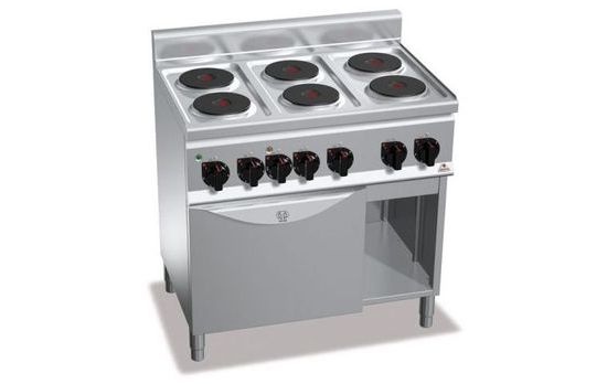 Духовой электрический шкаф с конвекцией мощностью 3кВт GN1/1+открытый шкаф, круглые конфорки. Рабочий стол и передние панели из нержавеющей стали AISI 304. Цельноштампованная герметичная поверхность. Чугунные пластины с предохранительным термостатом и 6-позиционным переключателем, подключающим 6 концентрических зон мощности. Датчики контроля напряжения и рабочего состояния. Электрическая конвекционная печь полностью из нержавеющей стали с опорами 4 уровней для решеток/противней 1/1GN. Линейный датчик и датчик достижения температуры. Штампованная дверь и противодверь из нержавеющий стали. Высокопрочная ручка из нержавеющей стали толщиной 20/10. Регулируемые ножки. Стандарт: 1 шт. решетка для печи с системой против опрокидывания.