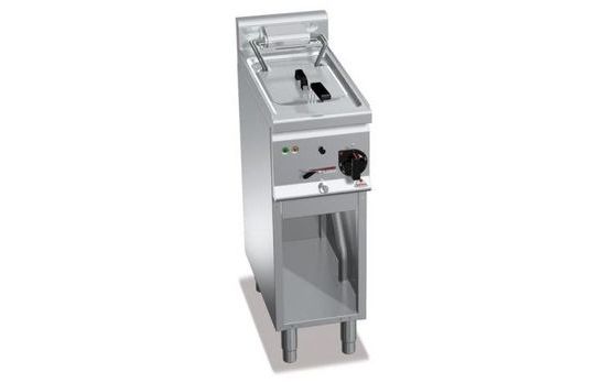 1 ванна 10 литров, повышенной мощности. Стол для емкости и передние панели из нержавеющей стали AISI 304. Штампованная закругленная емкость со специальными вращающимися ТЭНами из нержавеющей стали сплава инколой с повышенным сроком службы, могут достигать в кратчайшее время рабочей температуры, позволяя сократить расход масла на 60%. Система жарки, сохраняя неизменными органолептические свойства масла, позволяет приготовлять качественную пищу, сократив количество смен масла, что в итоге приводит к существенной экономии. Вращение ТЭНа облегчает операции чистки. Контроль температуры с помощью регулируемого термостата до 190°C и предохранительного термостата с ручным включением. Среднее время жарки 5 минут. Предварительный разогрев 6 минут (от 20 до 190°C). Максимальная производительность 25 кг/ч (E6F10-3B, E6F10-3M), 30 кг/ч (E6F10-3BS, E6F10-3MS). Регулируемые ножки.
