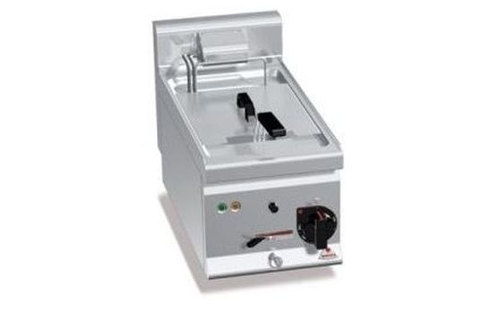 1 ванна 8 литров. Стол для емкости из нержавеющей стали AISI 304. Штампованная закругленная емкость со специальными вращающимися ТЭНами из нержавеющей стали сплава инколой с повышенным сроком службы, могут достигать в кратчайшее время рабочей температуры, позволяя сократить расход масла на 60%. Система жарки, сохраняя неизменными органолептические свойства масла, позволяет приготовлять качественную пищу, сократив количество смен масла, что в итоге приводит к существенной экономии. Вращение ТЭНа облегчает операции чистки. Контроль температуры с помощью регулируемого термостата до 190°C и предохранительного термостата с ручным включением. Среднее время жарки 5 минут. Предварительный разогрев 6 минут (от 20 до 190°C). Максимальная производительность 18 кг/ч.