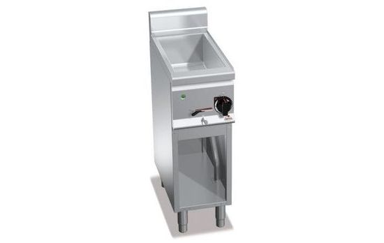 1 GN 3/4. Рабочий стол из нержавеющей стали AISI 304. ТЭНы из нержавеющей стали сплава инколой, расположенные внутри емкости. Электронная регулировка мощности. Емкость из нержавеющей стали AISI 304 с большим радиусом для удобства чистки. Возможны различные комбинации, благодаря возможности использовать емкости GastroNorm 6 различных размеров. Передний сливной кран с системой предохранения от возможного случайного открытия. Индикаторы напряжения. Регулируемые ножки.