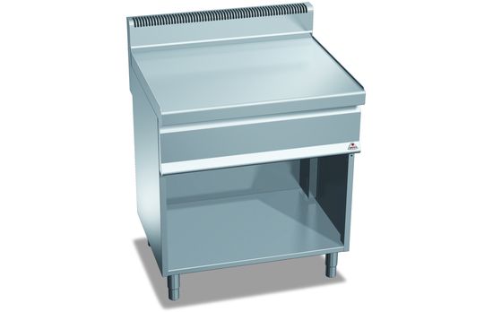 Площадь поверхности 5000см2. Рабочая поверхность и фронтальные панели из нержавеющеи? стали AISI 304. Одинарные и двои?ные модели, настольные или со столом, легкие в использовании и в чистке. Одинарные модели возможны в исполнении с практичным выдвижным ящиком для приборов и инструментов. Регулируемые ножки.