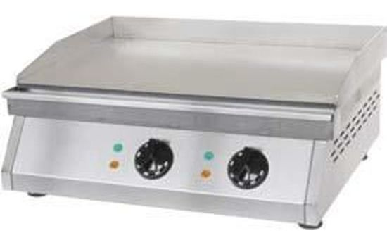 Гладкая жарочная поверхность с двумя зонами нагрева. Корпус из нержавеющей стали, регулируемый термостат 0-300С, ящик для сбора жира. Размер жарочной поверхности: 595х400 мм.