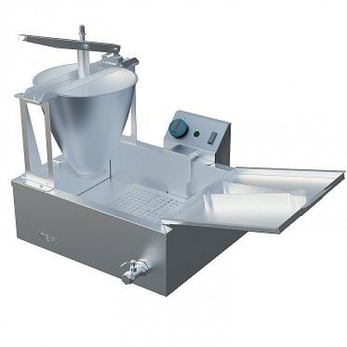 200 пончиков/час, объем заливаемого масла - 8л, объем фритюрной ванны -16л, объем дозатора для теста - 6л