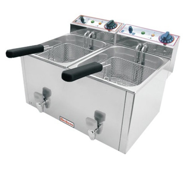 450Х520Х350 мм, 2х3,3 кВт, 220 В, 16+16кг/ч, 2 сетки 220х270х100 мм Предназначена для приготовления различных продуктов в большом количестве масла на предприятиях общественного питания и торговли. Модель оснащена аварийными термостатами, холодной зоной и световыми индикаторами режимов работы. Корпус и ванна выполнены из нержавеющей стали, корзины - из хромированной проволоки, ручка - из термостойкого материала.
