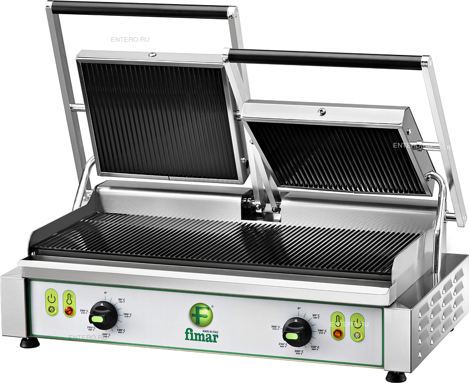Контактный гриль, ерхняя рабочая поверхность рифленая, нижняя гладкая 520х230мм, разогрев до 300С, 3.4 кВт, 220 В, вес нетто-33кг, брутто-40кг