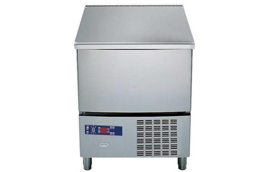 Загрузка: 19,5 кг (охлаждение), 15 кг (замораживание). Охлаждение продукта с 90°C до 3°C менее, чем за 90 минут. Охлаждение продукта с 90°C до -18°C менее, чем за 240 минут. Удобная электронная панель управления; программируемая. Автоматическое завершение рабочего цикла по времени или на основании данных термощупа. Режимы мягкого и жесткого охлаждения и скоростного замораживания. Автоматическое переключение в режим хранения по окончании цикла охлаждения/замораживания. Предустановленные режимы закаливания мороженого. В комплект входит односенсорный термощуп. Режимы автоматической интеллектуальной оттайки и оттайки вручную. Крупный светодиодный дисплей для отображения температуры и фактического времени/времени до конца цикла. Отдельные звуковые сигналы и световые индикаторы для извещения о проблемах HACCP и неполадках оборудования. Во время рабочего цикла отслеживаются температура и время. Доступна встроенная система HACCP. Газ R404 A в охлаждающем контуре. Возможна работа при температуре в помещении до 32°C. ARTE (алгоритм оценки остаточного времени) с использованием термощупа позволяет более эффективно спланировать работу кухни. Режим Turbo cooling: непрывное охлаждение при заданной температуре. Съемные уплотнители с магнитной вставкой и подогревом периметра. В стандартную комплектацию входят регулируемые по высоте ножки (15 см), колеса - опция. Конструкция полностью выполнена из н/стали AISI 304. Гигиеничная бесшовная внутренняя камера со скругленными углами для удобства чистки. Передняя панель на шарнирном креплении обеспечивает удобный доступ к основным компонентам. Полугерметичный компрессор 1 лс.