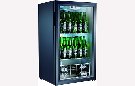 Холодильный шкаф витринного типа BESTFOOD BC98-MS широко используется в барах, кафе и предприятих торговли, из-за небольших рамеров 480x475x850 мм, может размещаться по барной или торговой стойкой, наличие стеклянной двери и подсветки позволяет контролировать наличие и ассортимент продуктов. Используется для хранения напитков. температурный режим +0…+10С, Охлаждаемый объем 98 л, 1 распашная стеклянная дверца, 2 полки-решетки, цвет черный.