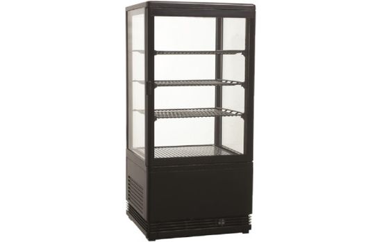 Холодильный шкаф витринного типа BESTFOOD RT-78B предназначен для использования на предприятих торговли, Панорамное остекление позволяет увидеть выкладку со всех сторон. Наличие подсветки и кругового остекления позволяет контролировать ассортимент и наличие продуктов. Температурный режим +0…+12С, Холодильник витринного типа BESTFOOD RT-78B с нижним расположением агрегата. Охлаждаемый объем 78 л, 1 распашная стеклянная дверца, 3 полки-решетки, цвет черный.