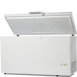 Ларь морозильный SMEG CH 400E c регулируемым термостатом, производительность агрегата 18 кг в сутки, внешний корпус с защитой от коррозии, внутренняя камера покрыта алюминием с защитой от царапин, теплоизоляция между внутренней камерой и внешним корпусом 60 мм, противовесная крышка, цифровой дисплей, звуковой сигнал при отклонение температуры от заданной на 3С, ручная разморозка, статическая система замораживания с 'D' трубкой, система замораживания снизу вверх, внутренний индикатор потребления энергии, климат класс SN-ST, автономное хранение без электричества 28 часов.