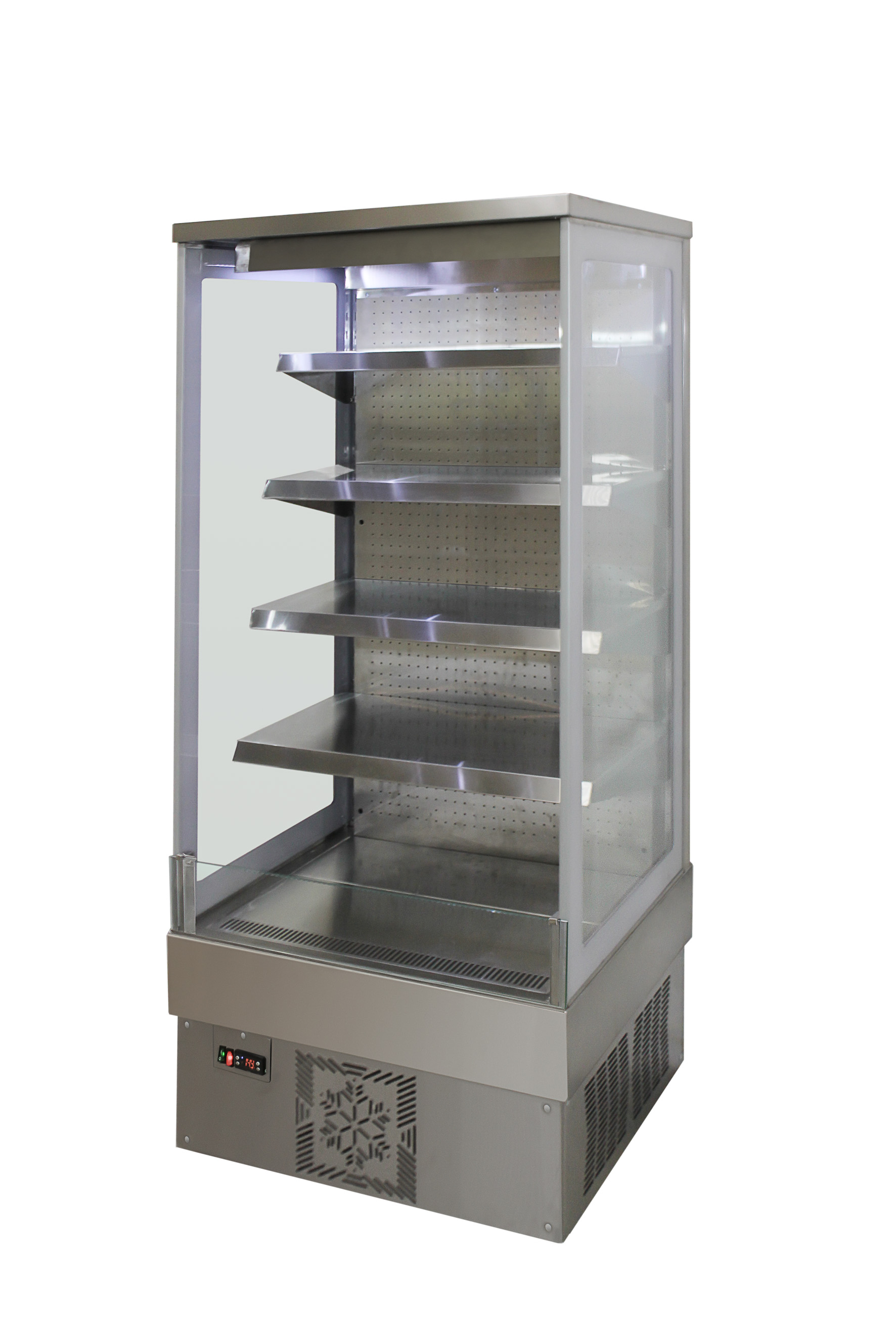 Витрина холодильная предназначена для кратковременного хранения пищевых продуктов и напитков на предприятиях общественного питания и торговли. Витрина используется как самостоятельно, так и в составе технологической линии. Температура в объеме витрины, °С +4…+8, Номинальная холодопроизводительность холодильного агрегата, по паспорту агрегата R404А изгтовленна из нст, размер 880х765х1880мм,сварная конструкция,регулировка температуры +2+8*С Динамическое охлаждение •Электронный блок управления с дисплеем