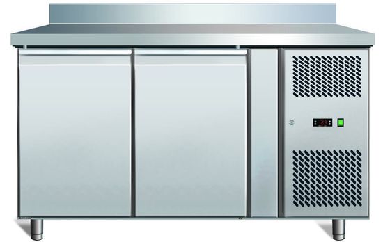 Холодильник-рабочий стол, -2...+8оС, 300 л, 2 дверцы, 2 полки-решетки GN1/1 с направляющими, столешница с бортом, снаружи - нержавеющая сталь 304/430, внутри - алюминий.