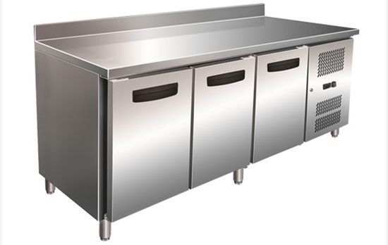Холодильник-рабочий стол -2...+8С, 450 л, 3 дверцы, 3 полки-решетки GN 1/1 с направляющими, столешница с бортом, снаружи - нерж.сталь 304/430, внутри - алюминий.