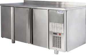 Компактная трехдверная модель, используется в магазинах для организации рабочего места продавца. Сочетает холодильный шкаф и рабочий стол. Соответствует классу защиты электроприборов IP24. Изготовлен из нержавеющей стали. Материал столешницы нержавеющая сталь. Диапазон рабочих температур -2...+10 °C. Материал обшивок корпуса снаружи и изнутри - нержавеющая сталь. Толщина стенки корпуса 43мм. Тип охлаждения динамический. Хладагент R134a. Температура окружающей среды, °С +12...+43. Терморегулятор: эл.блок. Тип оттайки: автоматическая с системой испарения конденсата . Тип полок: обычные. 3 полки в комплекте. Толщина столешницы 40. Высота борта, мм 60. Замок: опция.
