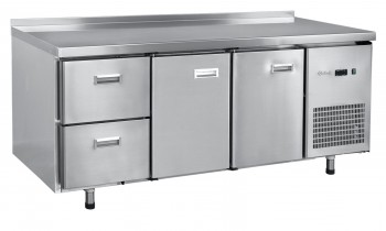 Стол холодильный среднетемпературный АБАТ СХС-70-02, две распашные дверки и два выкатных ящика на телескопических направляющих размером GN 1/1, а также две полки-решетки размером GN 1/1 с возможностью регулировки по высоте. Поверхность не охлаждаемая, ровная с бортом. t от -2? до +8C. Электронная панель управления, динамическое охлаждение, автоматическая оттайка.