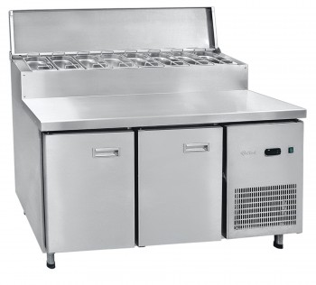 Стол холодильный среднетемпературный АБАТ СХС-80-01П с двумя распашными дверками и двумя полками под GN 1/1. Также имеет в верхнем отсеке 8 гастроемкостей GN 1/4 - 150 мм под общей откидной крышкой. t от -2? до +8C. Электронная панель управления, динамическое охлаждение, автоматическая оттайка.