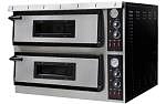 Печь для пиццы с электро-механическим управлением. Конструкцией предусмотрена возможность установки печей для пиццы друг на друга в 2 и 3 яруса на подставку с ножками соответствующей высоты. Причем, все печи можно с легкостью разделить для установки на отдельные подставки. Размер выпекаемой пиццы: 4 пиццы ?25 см или 1 пицца ?50 см. Материал корпуса: нержавеющая сталь AISI 430. Материал ТЭНов: углеродистая сталь. Диапазон регулировки температуры 20-500 °C. Время разогрева до 300 °C - 35мин. Термометр. Количество ТЭНов в одной камере 4шт.