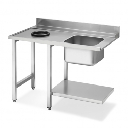 Стол SMEG WT51200SHL с мойкой и отверстием для слива для посудомоечных машин купольного типа, соединение левое. Выполнен из нержавеющей стали, ножки регулируются по высоте.