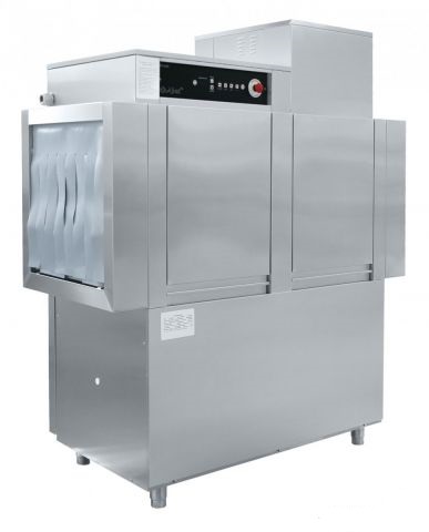 Конвеерная кассетная посудомоечная машина со столам загрузки и столом разгрузки, движение посуды справо-налево, производительность до 1700 тарелок/час, подключение к горячей и холодной воде, температура ополаскивания 85С, комплектация: 3 кассеты для мытья тарелок и подносов, 1 кассета для мытья стаканов, 1 кассета для мытья приборов с сеткой, дозатор моющего средства, дозатор ополаскивающего средства, 380В, 31кВт, 295кг