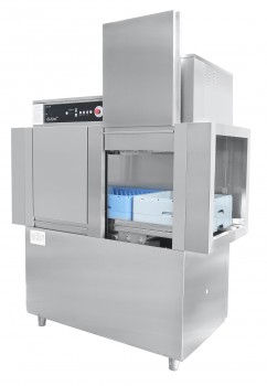 Конвеерная кассетная посудомоечная машина со столом загрузки и столом разгрузки, выпускается в правом и левом исполнении, производительность 95/1700 кассет/тарелок в час, подключение к горячей и холодной воде, температура ополаскивания 85С. В комплект входит: 4 кассеты для мытья тарелок, 2 кассеты для стаканов и бокалов, дозаторы моющего и ополаскивающего средства. Подача средств автоматическая, 3 программы мойки.Температура мойки 40 °С, температура ополаскивания, 85°С. Используется вместе с предмоечным и раздаточным столами СПМП-7-4 и СПМР-6-2.