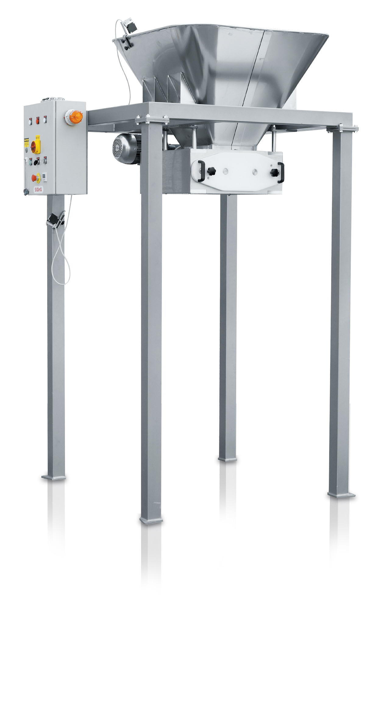 Загрузочные воронки являются обязательными устройствами для правильной подачи теста на закаточные линии для хлеба и других хлебобулочных изделий. Эти устройства, установленные над тестоделителями, могут дозировать тесто из воронки и обеспечивать равномерную работу тестоделителя. Загрузочные воронки можно установить на подвижные системы для подачи теста на несколько линий или для фиксации в свободном положении для чистки.  забаритные размеры: 1240x1240x2600 мм, вес 320 кг, размер куска теста 200х400 мм, объем загрузки  300 литров, мощность 1,5 кВт, 380В.