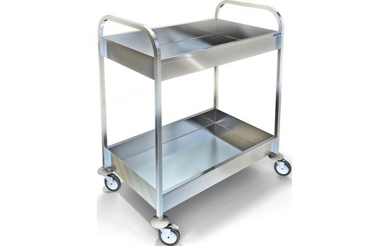 Тележка для сбора посуды. Каркас разборный из нержавеющей стали AISI 304, полка из нержавеющей стали AISI 304, два уровня. Оборудована колесами с тормозным устройством.