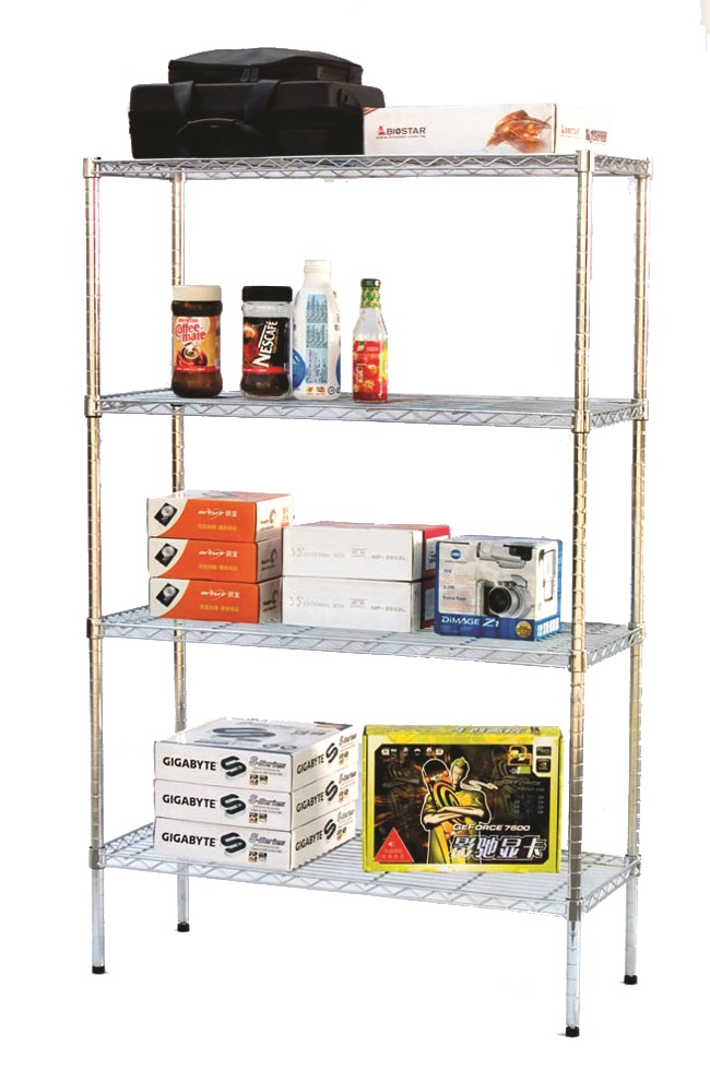Данная модель состоит из 4-х полок-решеток и 4-х стоек из хромированной стали.