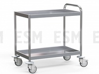 н/ст,430Х740Х850мм,сварная конструкция,труба 20х20мм,2 сплошные полки с бортами 15мм с 4-х сторон,комплект из 4 колес (2 колеса с тормозом) d=100мм,одна ручка по стороне 430мм,углы скругленны,нагрузка на полку до 50кг v