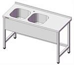 н/ст,1600х700х850..870мм,обвязка с 3-х сторон,сварная конструкция,каркас труба 40х40мм,2 цельнотянутых моечных отверстия 500х500х300мм слева,в комплекте сифоны,регулируемые ножки