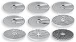 Комплект предназначен для овощерезки RG-100 и состоит из следующих дисков: Диски для тонкой нарезки 1.5 и 4 мм, Тёрки/измельчители 2 и 8 мм.