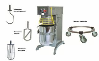 Машина используется для приготовления всевозможных кондитерских смесей (кремов, безе, взбитых сливок, муссов, самбуков и для приготовления дрожжевого теста, кроме крутого. Дежа из нержавеющей стали - 40л d360х480 мм(9,5кг). Рекомендована для цехов по производству хлебопекарных, кондитерских изделий. В комплекте: взбиватель рамный, взбиватель прутковый. Дополнительные опции: взбиватель крючкообразный, тележка подкатная.