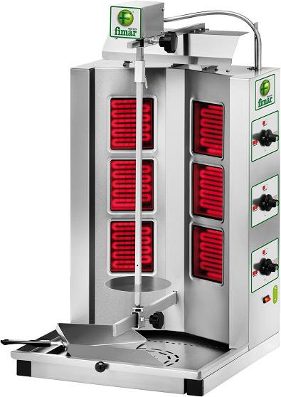Гриль вертикальный электрический (аппарат для шаурмы), 6 ТЭНов, посекторная регулировка ТЭНов, макс. диам. мяса 470 мм, макс. загрузка мяса 30 кг, регулируемая полезная высота для приготовления 410/460 мм, нерж.сталь, 3 уровня мощности.
