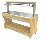 Витрина охлаждаемая с охлаждаемой ванной. Предназначена для оперативного хранения, демонстрации и раздачи холодных закусок и охлажденных напитков потребителю. Модуль оснащен системой контроля температуры, встроенной подсветкой, системой циркуляции воздуха. Модуль оснащен удобными дверцами со стороны посетителей и обслуживающего персонала. Дверцы обеспечивают доступ, как к выставляемым продуктам, так и упрощают выкладку продуктов. Внизу расположена нейтральная полка. В комплектацию входят направляющие для подносов. Материал: нержавеющая сталь.