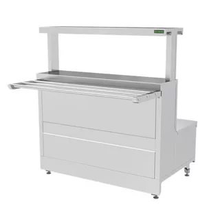 Мармит первых блюд. Предназначен для сохранения в горячем виде и оперативной раздачи первых блюд из наплитных котлов. Укомплектован 2?мя конфорками с терморегуляторами, обеспечивающими плавную регулировку мощности от 30 до 250 °С, направляющими для подносов; полкой 1-ярусной с подсветкой. Время разогрева конфорки до заданного параметра составляет 20 минут. В комплектацию входят направляющие для подносов, полка со встроенной подсветкой. Материал изготовления: нержавеющая сталь. Ножки регулируются по высоте до 20мм.