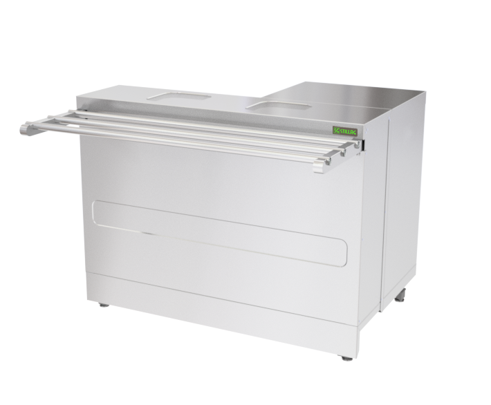 Кассовый модуль предназначен для установки кассового аппарата и проведения расчёта с потребителями. Модуль оснащен нейтральной тумбой с полками, розеткой 220В. Благодаря модульной системе, кассовый модуль можно смонтировать как в левом, так и в правом положении. В комплект входят направляющие для подносов. Оборудование имеет регулируемые по высоте ножки.